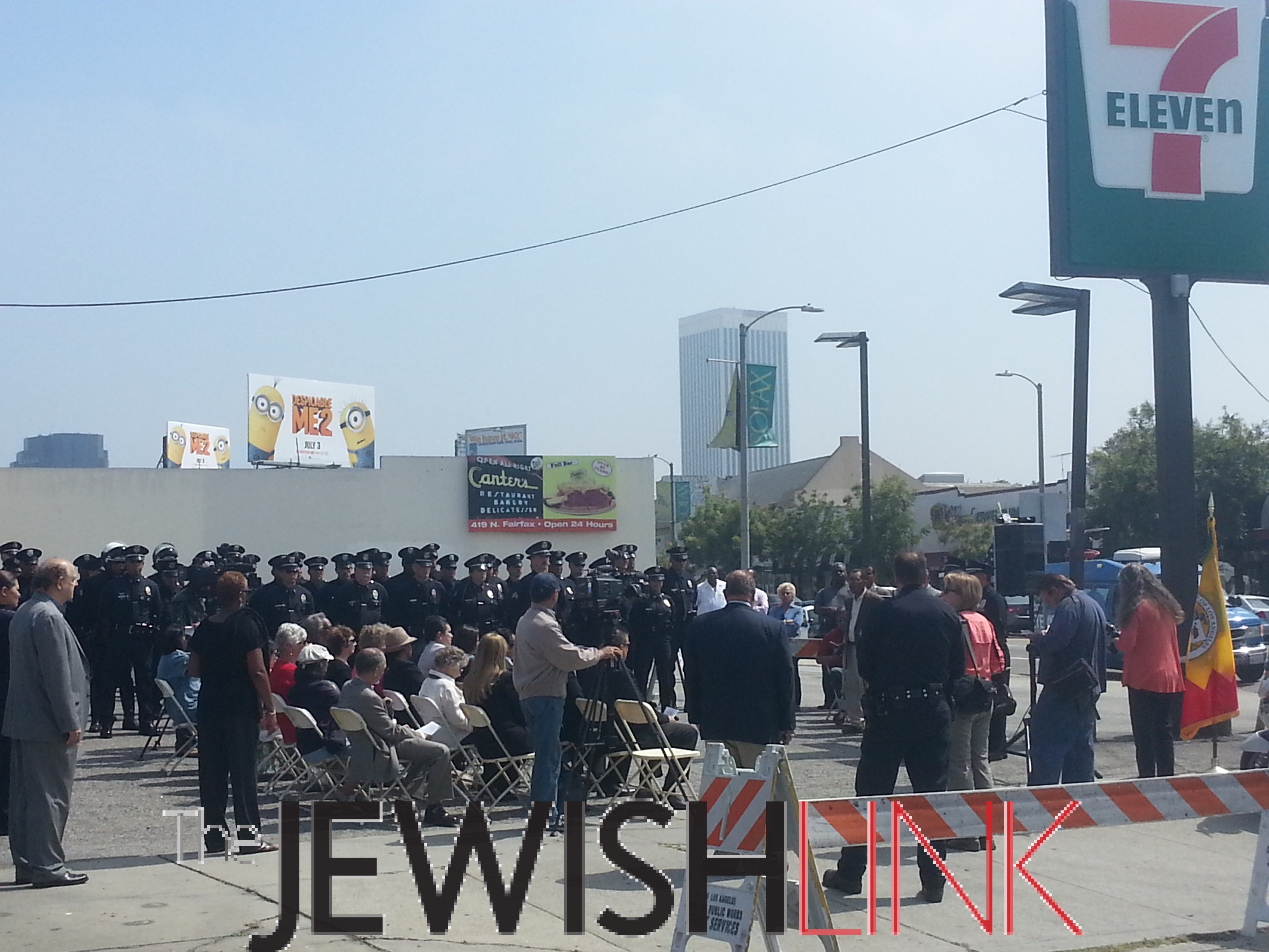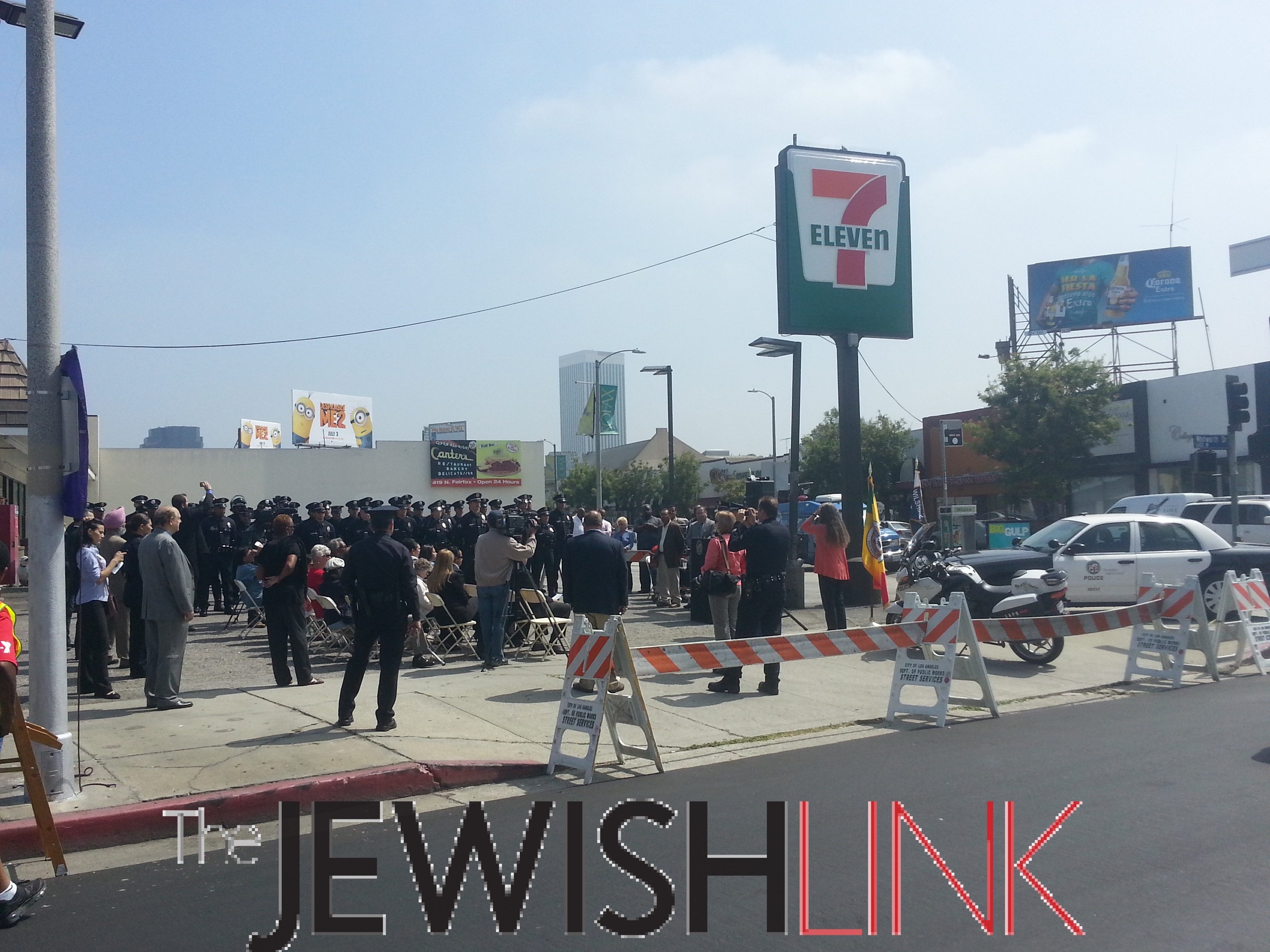 The corner of Whitworth Drive and Fairfax Avenue. In attendance were Los Angeles City Councilmember Herb Wesson Jr., District 9, Los Angeles City Councilmember Paul Koretz, District 5, LAPD Deputy Chief Terry Hara, Commanding Officer, Operations West Bureau, LAPD Assistant Commanding Officer Captain Dennis Kato, Operations West Bureau, LAPD Captain Eric T. Davis, Commanding Officer Wilshire Area, LAPD Captain Lillian L. Carranza, Commanding Officer, Wilshire Patrol, Sandra Navidad, Wife of Officer Navidad, Brandon Navidad, Son of Officer Navidad, Melissa Navidad, Daughter of Officer Navidad